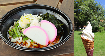 うどんやフライドポテト、自家製ソーセージなど軽食が味わえます。またソフトクリームも人気です。メニューは時季によって変わります。【不定休】 ※雨天の場合CLOSE