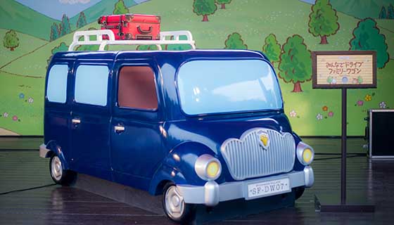 風の丘のステージにあるファミリーワゴンにのってドライブへ!ショコラウサギファミリーのみんなと一緒に、今日はどこへ行けるかな?