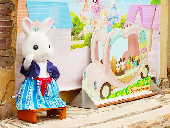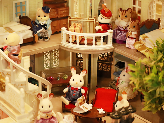 シルバニアファミリーの街を再現したジオラマの展示中。